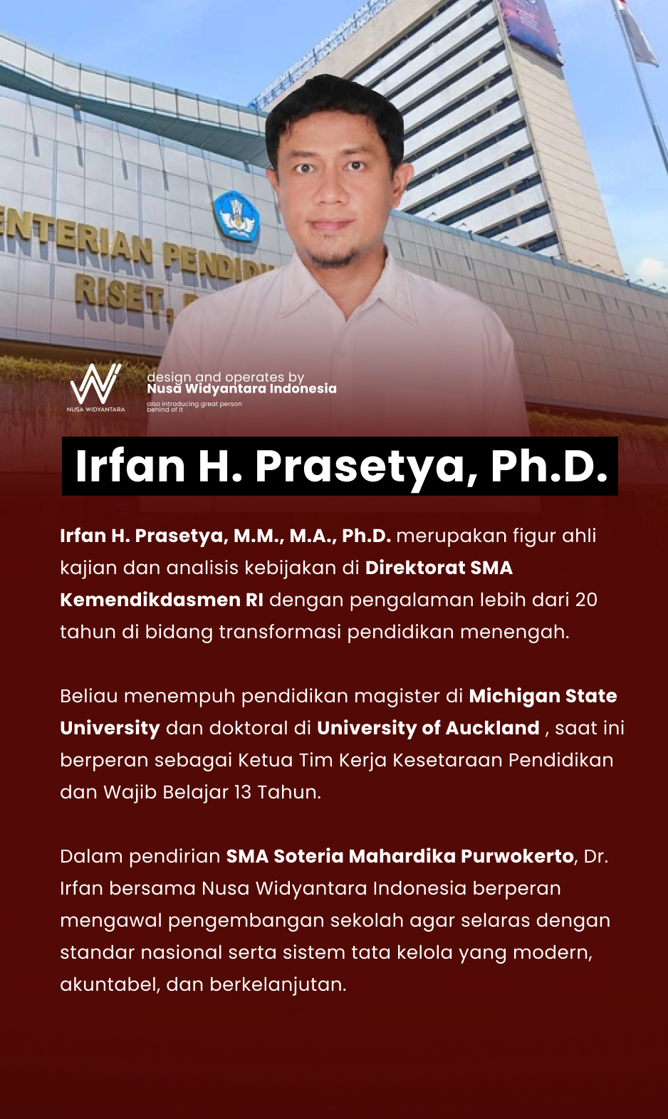 SMA Soteria Mahardika adalah sekolah interkultural pertama di Purwokerto. Membentuk siswa dengan Hati yang berempati, Pikiran yang kritis, dan Tubuh yang sehat serta tangguh. Dengan kurikulum terintegrasi, fasilitas modern, serta pendampingan guru profesional, kami mempersiapkan calon pemimpin masa depan yang unggul secara akademik dan siap bersaing di tingkat dunia.