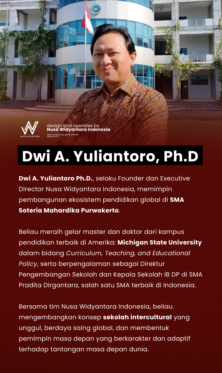 SMA Soteria Mahardika adalah sekolah interkultural pertama di Purwokerto. Membentuk siswa dengan Hati yang berempati, Pikiran yang kritis, dan Tubuh yang sehat serta tangguh. Dengan kurikulum terintegrasi, fasilitas modern, serta pendampingan guru profesional, kami mempersiapkan calon pemimpin masa depan yang unggul secara akademik dan siap bersaing di tingkat dunia.